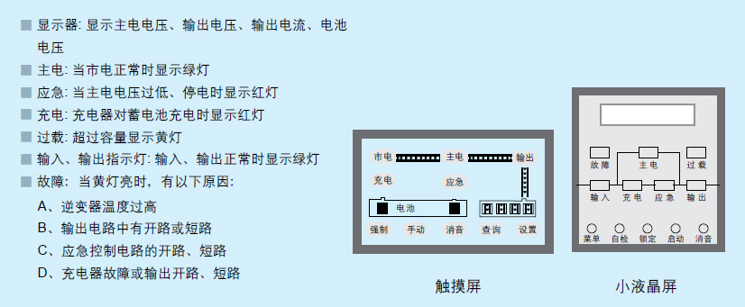 說明: 安裝形式、進(jìn)出線(上、下)、單路/雙路供電、輸入輸出相數(shù)、備用時(shí)間、消防聯(lián)