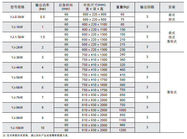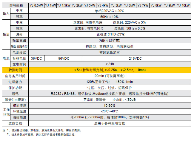 YJ 系列EPS產(chǎn)品技術(shù)參數(shù)