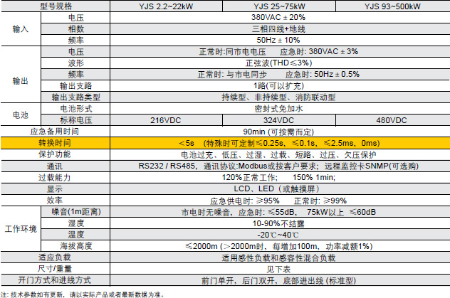 YJS系列EPS產(chǎn)品技術(shù)參數(shù)