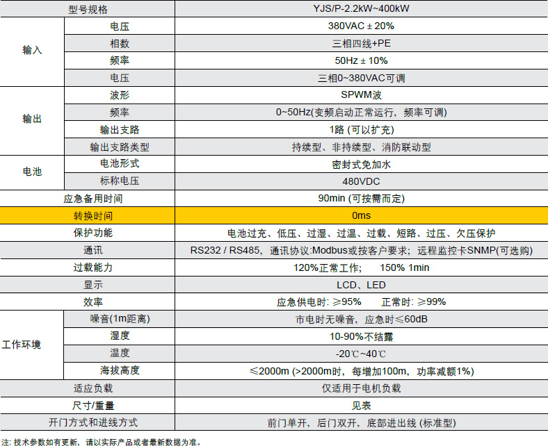 YJS/P系列EPS產(chǎn)品技術(shù)參數(shù)