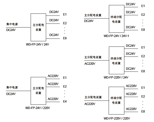 應急照明分配電裝置是c-bus系統(tǒng)的一個重要組成部分,分為主分配電裝置和終端分配電裝置。主分配電裝置為集中電源輸出進行分配電與控制保護,置于集中電源內,一般設置于配電間、豎井或消防控制室;終端分配電為終端燈具供電與控制保護之用,一般設置于豎井、配電間內。